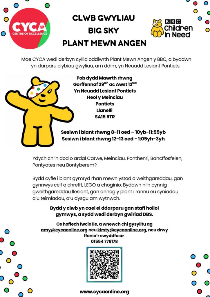 Clwb Gwyliau Big Sky yn Neuadd Lesiant Pontiets