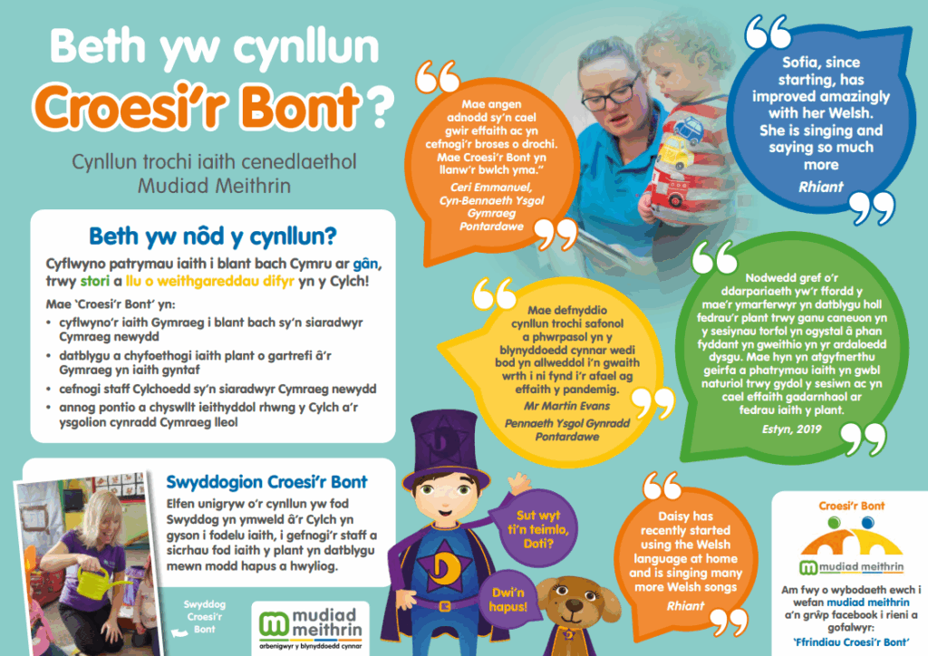 Ydych chi’n awyddus i gynnwys mwy o’r Gymraeg yn eich lleoliad, ond ddim yn siŵr ble i ddechrau? Darganfyddwch adnodd cyffrous CWLWM, Yr Addewid Cymraeg. Mae wedi’i gynllunio i’ch helpu i weu’r Gymraeg i mewn i’ch arferion dyddiol drwy gamau syml, ymarferol a syniadau creadigol wedi’u teilwra’n benodol ar gyfer y sector gofal plant.