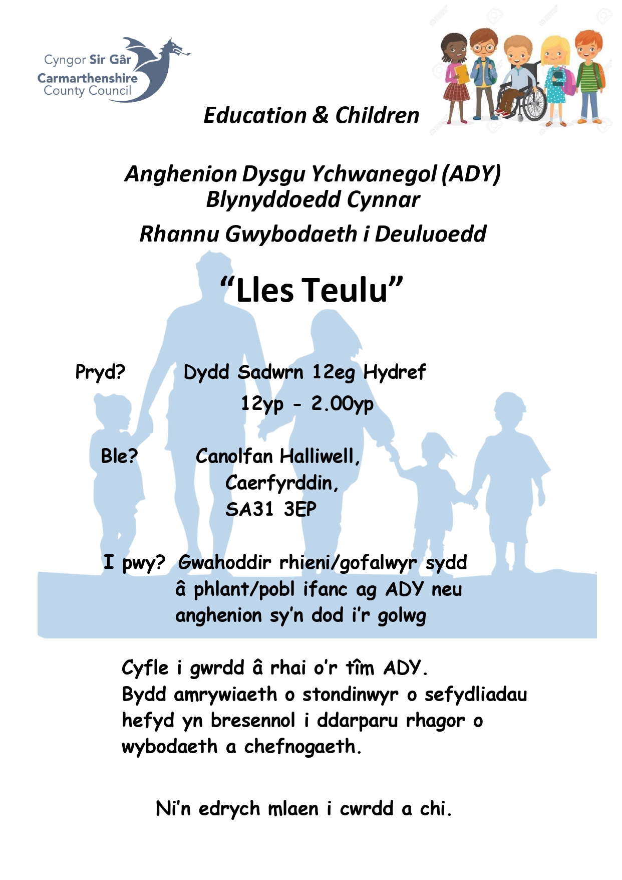 e-bost: gwybplant@sirgar.gov.uk