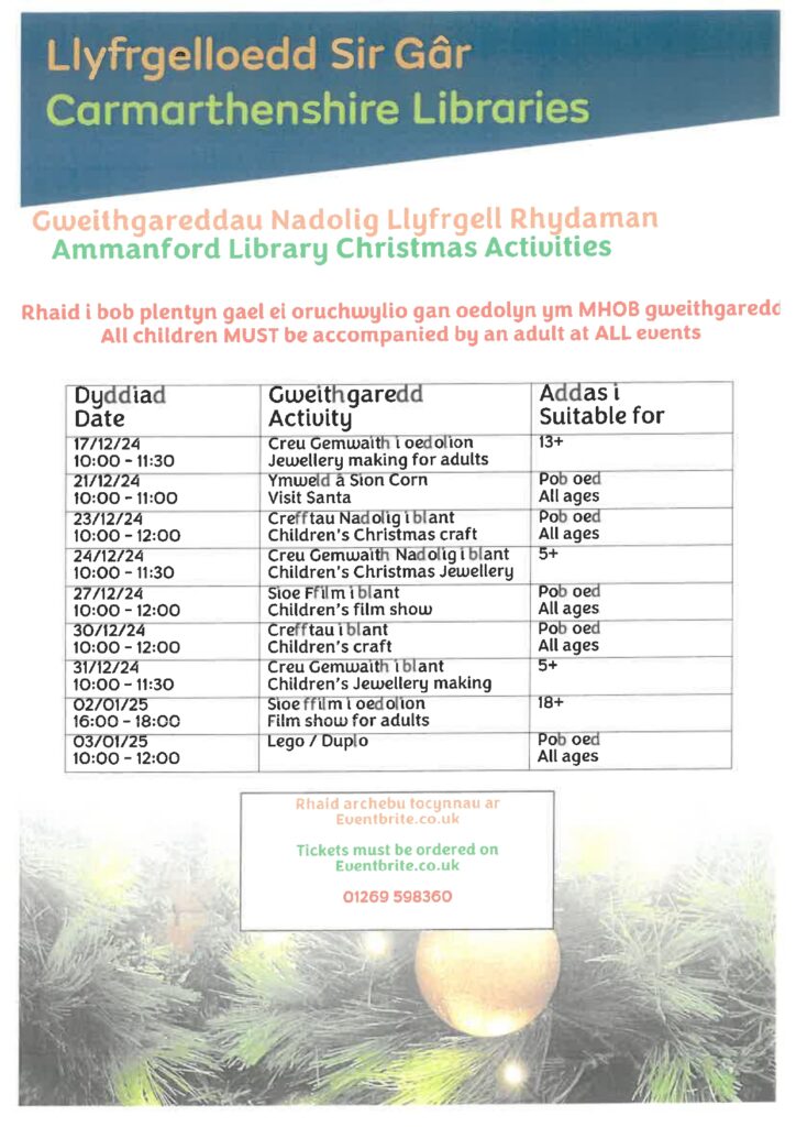 Gweithgareddau Nadolig Llyfrgell Rhydaman
