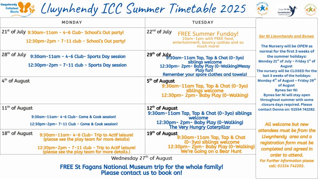 If you live in LLWYNHENDY come along to the FREE Summer Funday Tuesday July 22
