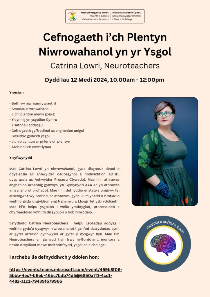 Niwrowahaniaeth Cymru Sesiynau Cyngor Rhithiol i Rieni a Gofalwyr