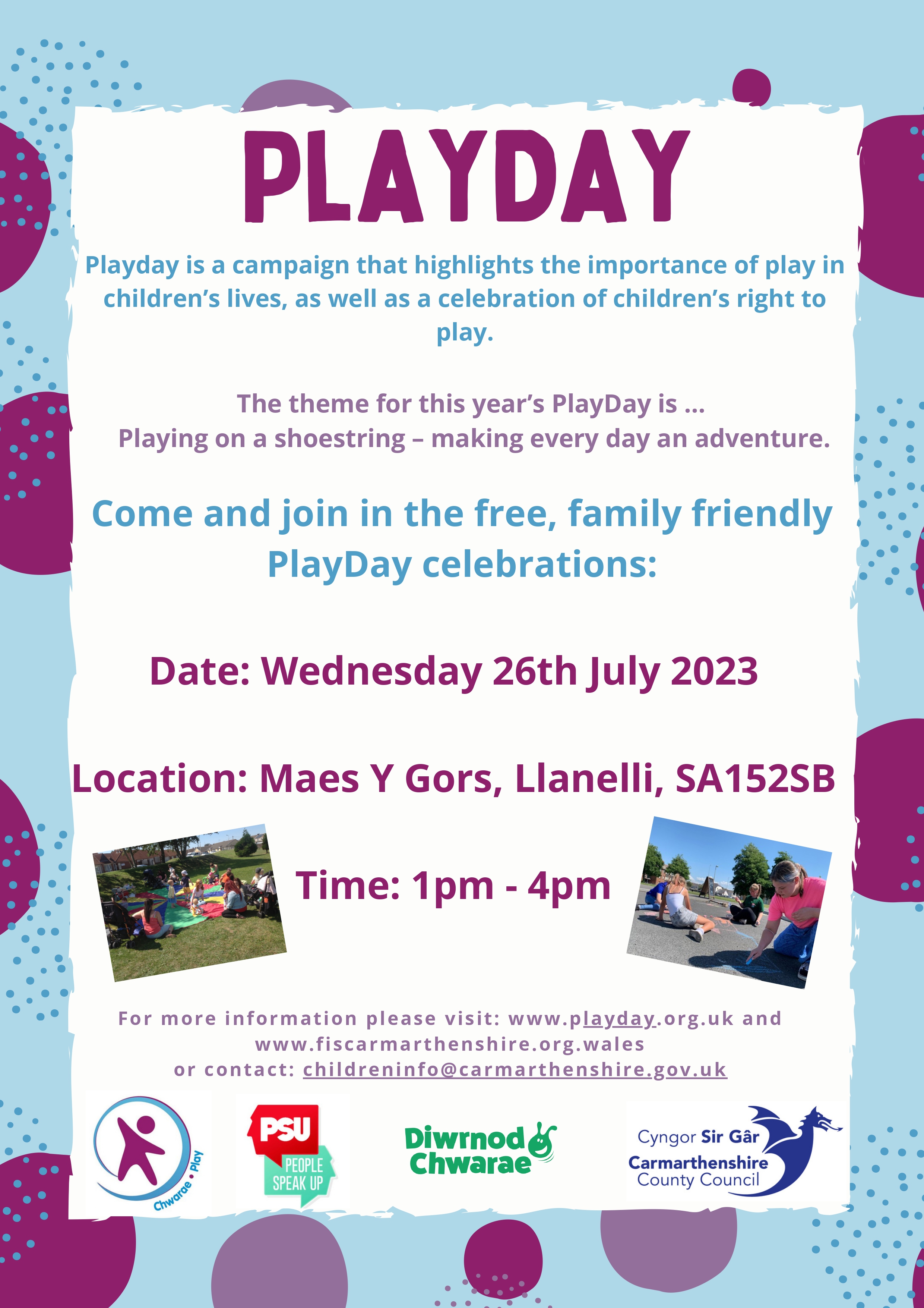 A ragor o wybodaeth ewch i: www.playday.org.uk/region/wales
