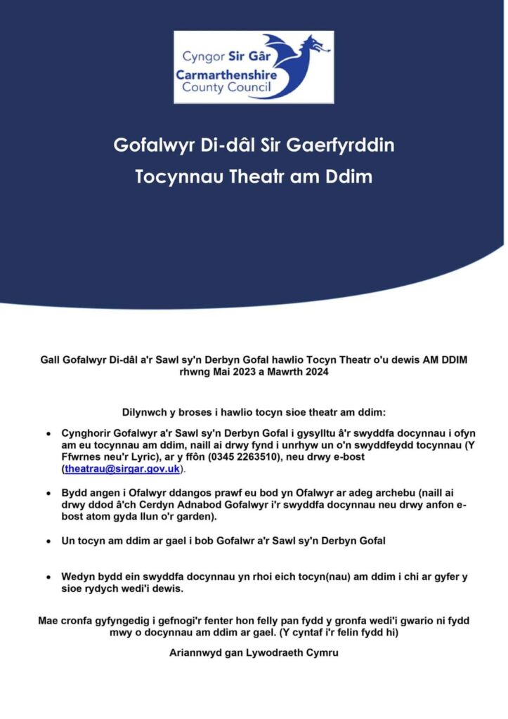 Tocynnau Theatr am Ddim