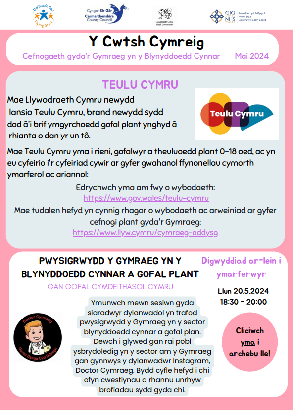 Os oes unrhyw beth yn anghywir neu allan o ddyddiad neu gall gael ei gynnwys yma anfonwch e-bost atom: gwybplant@sirgar.gov.uk